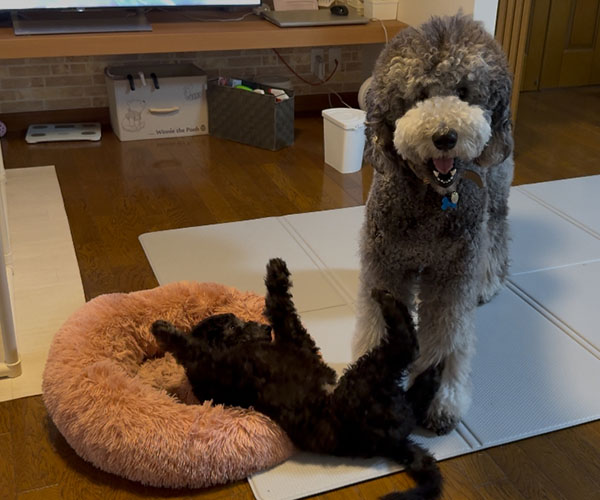 我が家に、はなちゃんがやって来てもう少しで二週間になります。お兄ちゃんのおと君とは微妙な距離感があり初めの一週間は近くによることもありません···