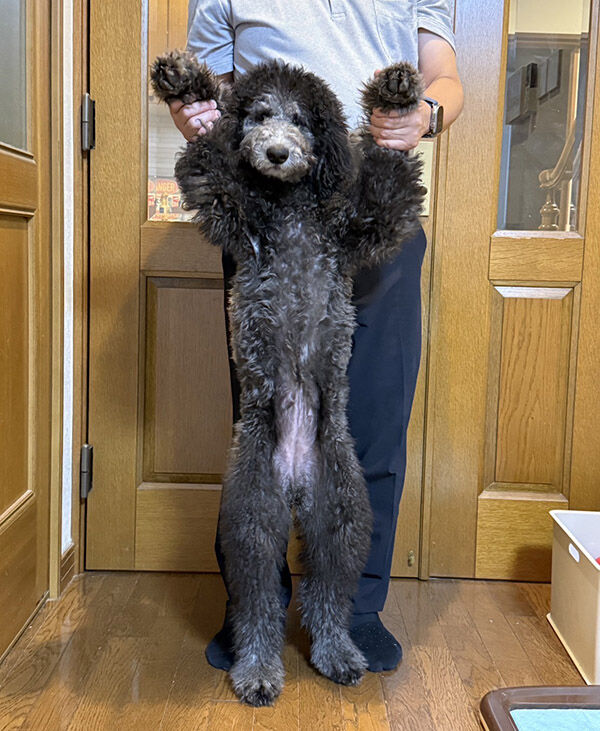 本日の生後4カ月をむかえた、はなちゃんの成長確認とセットで全員の体重を測定しました。はなちゃんは4カ月で13キロになりました。おと君よりは少···